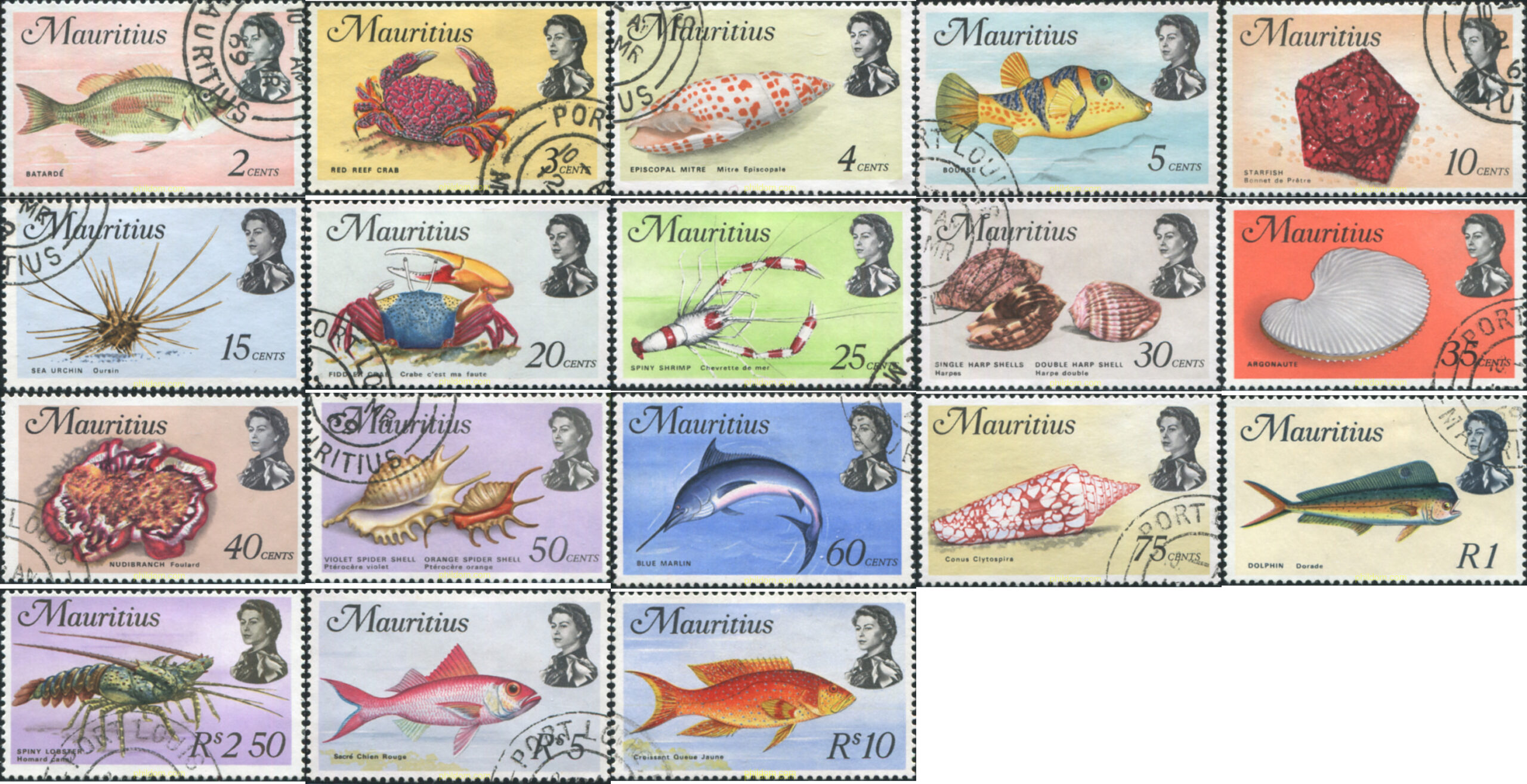 Serie de 18 valores matasellados