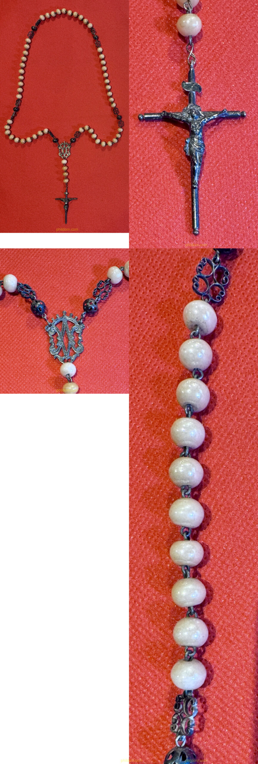 PRECIOSO Y ANTIGUO ROSARIO CON CUENTAS DE PERLA Y PLATA S.XIX 50cm